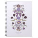 Boho und rustikales Notizbuch mit handgezeichneter Abbildung von Bögen und Blume in lila.