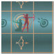 Elegantes, modernes Bogenmuster. Die künstlerische Kunst hat einen rasterartigen Schachbrettstil mit einem grünen Männchen und einer roten Silhouette, Bögen, Pfeilen und Stierkampfzielen. > Einzigartige Idee für stolze Bogenschützen, Trainer, Instruktor, Lehrer oder Turniere offiziell. > Personalisieren Sie es! Hinzufügen von individuelle Name, Foto oder Text.