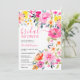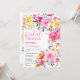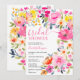 Bohemian bold floral watercolor bridal shower invitation featuring hand painted bright blooms pink, orange, yellow flowers and greenery eucalyptus leaves and indigo foliage with a modern script brush font. Perfect bridal invite for Spring and summer, for garden party theme and outdoors.