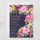 Bohemian bold floral watercolor navy bridal shower einladung