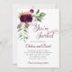 This wedding invitation features a romantic and elegant design, with a rich floral arrangement in burgundy, blush, and green adorning the top corner. The layout is clean and centered, using graceful script and serif fonts to convey a formal tone. Event details are clearly presented, including the date, time, venue, and a note about post-ceremony festivities. The overall aesthetic blends classic charm with celebratory warmth, making it suitable for a traditional church wedding followed by a joyful reception.