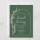 Die Hochzeitskollektion des Delicate Bloom Paperie mit Boho-Gewölbe mit schlichter, goldfarbener Linienkunst und elegantem Blattwerk auf immergrünem und Elfenbeinhintergrund. Fügen Sie die wichtigsten Informationen Ihrer Hochzeit hinzu und finden Sie passende Artikel (und andere Farbarten!) in unserem Shop. Dieses Design ist vollständig anpassbar, und die Elemente im Design können auf die Farben geändert werden, die Sie für Ihre moderne Hochzeit bevorzugen.