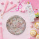 Bohemisch erröten Blumentypographie der rosa Pappteller