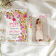 Eine hübsche, gürmig Bohemische Rosen, Wildblumen Frühjahrsklasse der 2025 Abschlussfeier mit hübschen pastellfarbenen Rosen, wilden Blume in boho lavender, pfirsichfarben, korallen, rot, grüne Blätter, Farn und mehr, mit einer gebürsteten Schrift Typografie auf einem eleganten, editierbaren weißen Hintergrund. Fügen Sie Ihr Foto hinten hinzu.