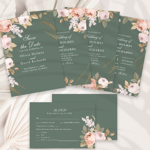 Bohemisch Sage Green Peonies Hochzeitseinladung Einladung