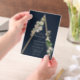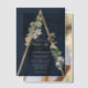 Eine wunderschöne, rustikale Holzpyramide im böhmischen Stil mit weißen Aquarellblumen, die auf der Seite mit einem blauen Hintergrund verziert sind. Ein einzigartiges Design, das Vintage weiße Wasserfarbenbotanikale auf einem böhmischen Dreieck verwendet. Ein charmantes weißes Blumendesign mit rustikalen und geometrischen Merkmalen und eleganter Schrifttyp. Ein elegantes Hochzeitsdesign mit modernen Elementen. Es stehen auch passende Hochzeitsstilleriedateien und andere Hochzeitsformate zur Verfügung.