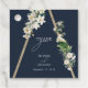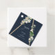 Eine wunderschöne, rustikale Holzpyramide im böhmischen Stil mit weißen Aquarellblumen, die auf der Seite mit einem blauen Hintergrund verziert sind. Ein einzigartiges Design, das Vintage weiße Wasserfarbenbotanikale auf einem böhmischen Dreieck verwendet. Ein charmantes weißes Blumendesign mit rustikalen und geometrischen Merkmalen und eleganter Schrifttyp. Ein elegantes Hochzeitsgunst-Design mit modernen Elementen. Auch die passenden Hochzeitseinladungen und andere Schreibwaren sind verfügbar.
