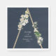 Eine wunderschöne, rustikale Holzpyramide im böhmischen Stil mit weißen Aquarellblumen, die auf der Seite mit einem blauen Hintergrund verziert sind. Ein einzigartiges Design, das Vintage weiße Wasserfarbenbotanikale auf einem böhmischen Dreieck verwendet. Ein charmantes weißes Blumendesign mit rustikalen und geometrischen Merkmalen und eleganter Schrifttyp. Eine elegante Hochzeitsserviette mit modernen Elementen. Auch die passenden Hochzeitseinladungen und andere Schreibwaren sind verfügbar.