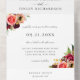 Schöne bohemianische Blumenarrangements mit Federn, Blattwerk und farbenfrohen Blume, alles in einer Einladung zur Hochzeit. Template bietet Platz, um jede Einladung mit Ihrem Gastnamen und Ihrer Adresse zu personalisieren.