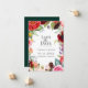 Elegante böhmische Blume, Federn und Blattwerk in trendigen Bordeaux-, Rosa-, Grün-, Rot-, Violett- und Pfirsichtönen, "Wedding Save the Date Card". Die Rückseite der Karte weist eine solide smaragdgrüne Farbe auf.
