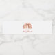 Das bezaubernde Baby Dusche Waater Flaschenlabel besticht durch trendigen Boho Stil und eine trendige handgeschriebene Schrift. Terrakotta und niedlicher, neutraler Regenbogen auf weißem Hintergrund.