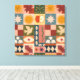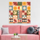 Ein einzigartiges und künstlerisches Patchwork-Muster, inspiriert von mystischer Symbolik und zeitloser Schönheit der Natur. Dieses auffallende Design mit Sonnen, Monden, Sternen, Schlangen, Augen, Äpfeln, Vögeln und geometrischen Formen in einer reichen Mitte des Jahrhunderts inspirierten Palette. Ideal für diejenigen, die böhmische Innenräume, spirituelles Dekor oder Retro-Dekorationselemente Liebe geben. Ideal für Stoff, Tapete, Quilting, kreative Projekte und eklektisches Zuhause-Styling.