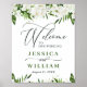 Begrüßen Sie Ihre Hochzeitsfeier mit dem Watercolor Eukalyptus Greenery Wedding Welcome Poster mit üppiger botanischer Vegetation und weißen Blume in Aquarellfarbe, "Willkommen zu unserem glücklichen aller Zeiten", Ihren Namen und Hochzeitsdatum in einer schicken Mischung aus modernen Blockbauten und handgeschriebenen Kalligrafietypen.