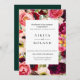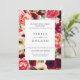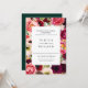 Schöne böhmische Blume, Federn und Blattwerk in zauberhaften Bordeaux, Gelb, Violett, Rosa, Rot, Creme und Grüntöne, Hochzeitseinladung. Anpassen von Text, Schriftart, Farbe und Größe. Backing Farbe, in Smaragdgrün dargestellt, kann angepasst werden.