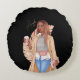 Bohemische Imitate Glitzer Girl Tan Haar Braun Ros Rundes Kissen