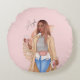 Bohemische Imitate Glitzer Girl Tan Hair Pink Rundes Kissen