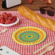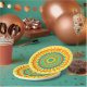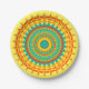 Farbenfrohe Teller mit Mandala-Design in Türkis-, Orange- und Gelbtönen.