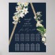 Eine wunderschöne, rustikale Holzpyramide im böhmischen Stil mit weißen Aquarellblumen, die auf der Seite mit einem blauen Hintergrund verziert sind. Ein einzigartiges Design, das Vintage weiße Wasserfarbenbotanikale auf einem böhmischen Dreieck verwendet. Ein charmantes weißes Blumendesign mit rustikalen und geometrischen Merkmalen und eleganter Schrifttyp. Eine elegante Hochzeitssitzkarte mit modernen Elementen. Auch die passenden Hochzeitseinladungen und andere Schreibwaren sind verfügbar.