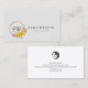 Schöne und elegante böhmische Sonnenblumen und Blattwerk bilden einen Kranz um Ihre Monogramm-Buchstaben auf den unteren links. Ihr Name und Titel erscheinen auf der unteren rechten Seite der Karte. Der Hintergrund ist eine Papierkornstruktur. Perfektes Design für Damen, delikate, künstlerische Themen. Empfohlene Berufe oder Unternehmen : Sommelier, Hochzeitsplaner, Einzelhandel, Berater, Beratung, Schönheit, Persönliche Entwicklung, Florist, Veranstaltungsplaner, Fotografie, Make-up Artist, Haar Stylist, Nageltechniker, Beautician, Kosmetologe, WELLNESS-CENTER Salon Store und mehr