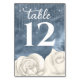 Bohemische White Rose Dusty Blue und Silver Weddin Tischnummer