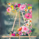 Bohemisches Brautparty mit floralen Blumenfarben, mit handgemalten, hellen Blüten, rosa, orange, gelben Blumen, grünen Eukalyptus-Blätter und Indigofolien mit einem modernen Script-Bürste-Schriftart auf transparentem Acryl. Die perfekte Brautbar lädt zum Frühling und Sommer, zum Party im Garten und im Freien ein.