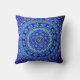 Blaues böhmisches Artkissen mit Elefanten kreist auf ihm ein.