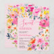 Bohemische Blumenfarbe Sweet 16 Geburtstagseinladung mit handgemalten, hellen Blüten pink, orange, gelb Blumen und grünen Eukalyptus-Blätter und indigofoliage mit einem modernen Script-Bürste Schriftart auf pastellrot Rosa. Die perfekte Brautbar lädt zum Frühling und Sommer, zum Party im Garten und im Freien ein.