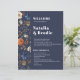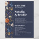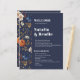 Ein hübscher, handgemalter Aquarellrahmen mit modernem Schriftart und dunklem Moody. Ein dunkles und launisches französisches Country-Design. Editieren Sie einfach die Vorlage, um Ihre Hochzeitsfeier Anzug. Navy Blue Terracotta Bohemisch Hochzeitsprogramm.