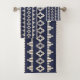 Muster-Badtuch-Set der Trendy böhmischen Artcremesteigung geometrisches im dunklen Marineblau. Große moderne und Chic suchen nach einem jugendlich Badezimmerdekor.