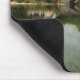 Mousepad mit einer Bohinj Seelandschaft mit ruhigem Wasser und Reflexion von Johannes die Baptistenkirche und die Steinbrücke in Ribcev Laz, Slowenien, am Anfang der Herbstjahreszeit.