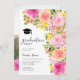 Anrufklasse 2024! Hübsche schöne Gartenfrühlingsparty Sommerabschlussfeier mit hübschen fett- und lebhaften Rosa-, Pfirsich- und Gelbblumen und grünen Blätter, mit einer gebürsteten Schriftzeichen auf elegantem, bearbeitbarem weißem Hintergrund