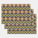 Boho 70er Retro Shapes Muster Blue Orange Geschenkpapier Set