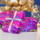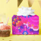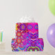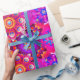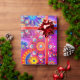 Bohemische abstrakte Blume Druckverpackungspapier. In den Farben Blau, Rosa, Orange, Grün, Blau, Gelb und lila.