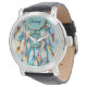 Diese Uhr zeigt einen amerikanischen Traumfänger mit schönen Federn in Pastellfarben. Wasserfarbe, digitale Kunst. Ein großartiges, personalisierbares Geschenk für jeden Mann!