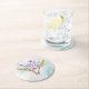 Untersetzer aus Papier mit türkisfarbenem und pastellfarbenem Aquarell. Ein schicker Tierskull mit Blumenstrauß auf dem Kopf und kleinen Schmetterlingen, die herumflattern.