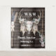 Ein wunderschönes und rustikales Hochzeitszenario-Foto, das mit den Hirschgeweihen, die mit schönen rosa Rosen verziert sind, mit zartem Federn und Set aus Blattgrün und braunem Waldkorn geschmückt ist. Es ist auf der links und rechten Seite von Ästen gerahmt, die Guinea-Geflügel-Federn und Sommerblüten in verblassten. Weiße Vorlagen für die Brautpaare Monogramm und Wünsche zu ihren Gästen erscheinen oben und unter dem Schädel wie auch eine Vorlage für das Datum der Hochzeit.