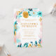 Boho Aquamarin Blue and Gold Watercolor Floral Wed Einladung