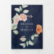 Boho Arch Earthy Floral Navy Blue QR Code Wedding Dreifach Gefaltete Einladung