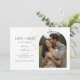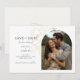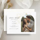 Diese moderne, minimalistische Hochzeit bewahrt das Datum flache Karten mit einem Boho-Arch-Paar Foto, delikate Imitation goldenen Blumenelementen und ein zeitgenössisches Set von Schriftart in Jetblack. Die Blume wird auf der Rückseite vor einem weichen Elfenbeinhintergrund wiederholt. Dieses Design ist modern und elegant. Ideal für das stilvolle und elegante Paar.