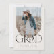 Boho Arch Simple Three Foto Budget Abschluss Einladung verfügt über ein Foto auf der Vorderseite und zwei Fotos auf der Rückseite zusammen mit Abschluss Einladungsdetails.