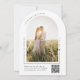 Hochzeitseinladung mit einem einfachen Bogenrahmen und Design. Rückseite mit Foto und QR-Code für UAWG. Passen Sie Ihre Daten an. Klicken Sie auf "Klick um weitere Anpassungen vorzunehmen", um den Stil, die Größe oder die Farbe des Schriftartes zu ändern.