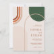 Moderne Hochzeitseinladung mit Bogenformen in Terrakotta, Rost, gebrannter Orange und dunkelgrünen Smaragdtönen. Sammlung: https://www.zazzle.com/collections/boho_arch_abstract_wedding_collection-119061662657911589