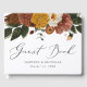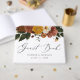 Rustikales Gästebuch mit Aquarell-Blume und Grünpflanzen in gedämpften Herbstfarben Elfenbein, Orange, Senfgold, Olivgrün, staubige Rose und Braun. "Gästebuch" wird in einem modernen Kalligraphieskript mit Ihren Namen und Hochzeitstermin angezeigt, wie unten gezeigt. Der Rücken zeigt Ihre Namen und Hochzeit in fett weißer Schrift. Das hintere Gästebuch der Herbsthochzeit bietet einen olivgrünen Aquarell. Entworfen, um mit unserer Boho Herbst Floral Hochzeitskollektion zu koordinieren.