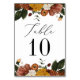 Elegante Herbstkarte mit Blumensträußen mit Aquarellbäumen und Blume in den Erdtönen Elfenbein, Marigold, Bordeaux, staubige Rose und Olivgrün. Die Tischnummer ist elegant und besteht aus einer Mischung aus und Blättern. Personalisieren Sie die Nummer für jede Tischkarte und fügen Sie sie Ihrem Warenkorb hinzu. Entworfen, um mit unserer Boho Herbst Floral Hochzeitskollektion zu koordinieren.