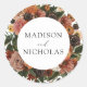 Siegel Sie Ihre Hochzeitseinladung mit diesen eleganten, blumengeschmückten Hochzeitsaufklebern im Herbst. Die Aufkleber sind von einem Kranz mit Aquarellfarben und Grünpflanzen umgeben, in abgestuften Herbstfarben wie Elfenbein, Orange, Gelb, Rost, Olivgrün, staubige Rose und Braun. Das Design koordiniert mit unserer Hochzeitskollektion Boho Herbst Floral.