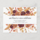 Diese trendige Wildblume-Änderung der Adresse Postkarte verfügt über einen Rahmen von reichlich dunkelrot und terracotta Herbstfarbenen Blume und Blätter auf einem weißen Hintergrund. Die Worte "wir haben eine neue Adresse" erscheinen in eleganter, moderner Schrift. Eine einfache und bewegende Ankündigung, die Sie stolz an Freunde und Familie schicken werden.