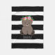Eine Fleecedecke, die eine Leinwand kennzeichnet, inspirierte Illustration eines Bären, der eine Blumenkrone trägt. Hintergrund ist Schwarzweiss-Streifen. Personifizieren Sie den Namen.