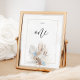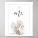 Elegantes Strandmotiv-Tischnummer-Schild mit Aquarell-Anordnung von Blätter und Muscheln aus getrockneten Palmen.