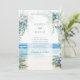 Feiern Sie Ihre Liebe mit der ruhigen Schönheit unseres Boho Beach Watercolor Floral Arch Wedding Einladung. Diese elegante Einladung besticht durch eine atemberaubende, handbemalte Aquarellszene mit einem ruhigen Blick auf den Ozean, der von einem zarten Boho-Blumenbogen gerahmt ist. Weich bläuliche und weiße Blüten mit üppig grünen Blätter schaffen eine traumhafte, romantische Atmosphäre, als würden Sie Ihre Gäste zu einem Spaziergang an den Strand einladen. Die Rückseite der Einladung zeigt eine beruhigende blau-grüne Waschung, die den Küstentil des Designs verstärkt. Diese Einladung verbindet die böhmische Eleganz mit der Ruhe am Meer und Set den Ton für eine zauberhafte Hochzeit am Ozean. Der individuell gestaltbare Text sorgt dafür, dass jedes Detail Ihres besonderen Tages in einem harmonischen, raffinierten Stil präsentiert wird. Pair diese Einladung mit dem passenden Geschirr aus unserer Boho Floral Beach Watercolor Wedding Collection für eine geschlossene und raffinierte Hochzeitssuite.