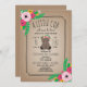 Eine Babyduscheinladung, die eine Abbildung eines Babybären mit einer rosa Blume-Krone zeigt. Personalisieren Sie den Text. Der Hintergrund ist ein brauner Kartenbestand inspiriert.